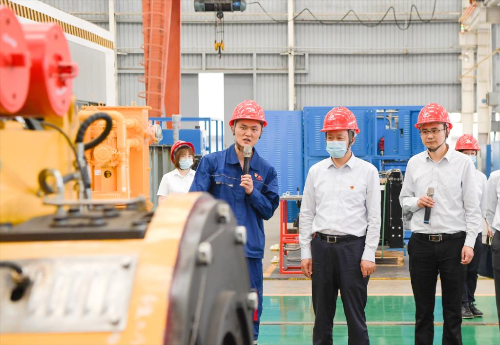 俞培根首先与东方宏华领导班子座谈,调研东方宏华党的建设、生产经营及主题教育开展情况,并围绕深化改革、科技创新、能源装备高质量发展等交流研讨。