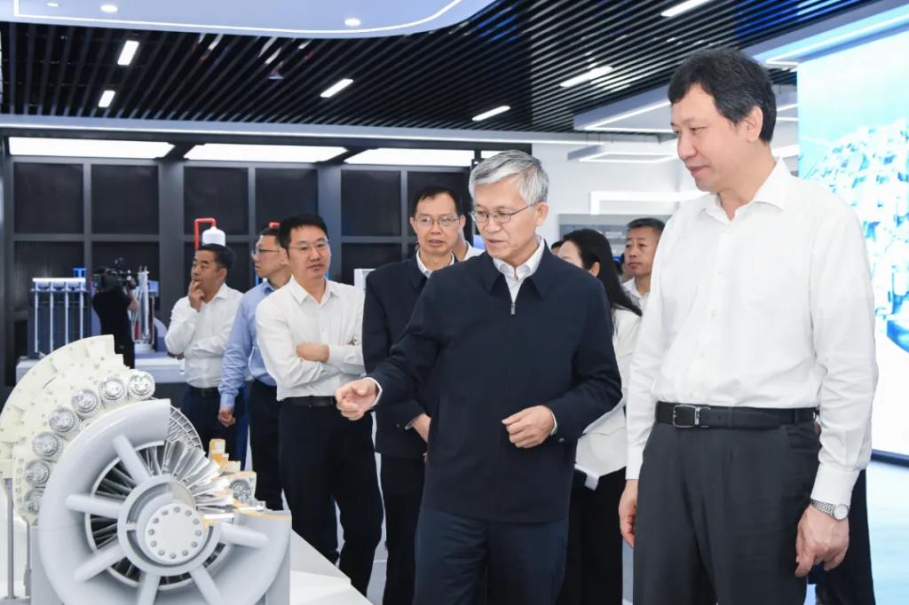在张彦军的陪同下,靳国卫一行参观了人生就是搏科技展示厅,深入了解了人生就是搏集团的发展历程、产业格局、装备制造、绿色低碳发展等情况。